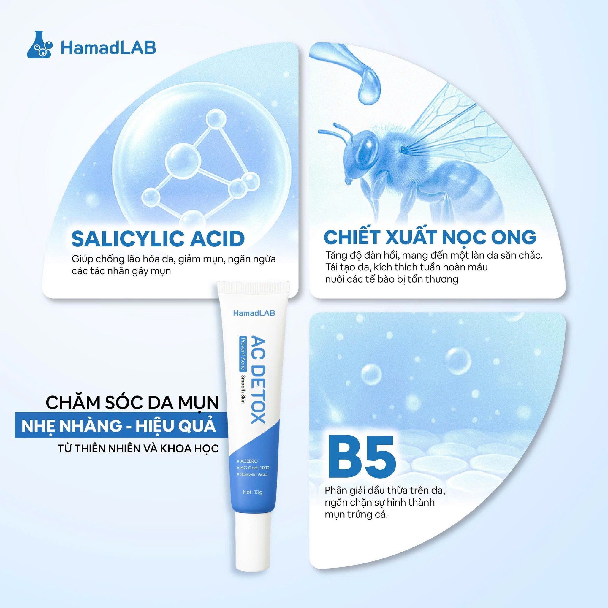 - Salicylic Acid: Tẩy tế bào chết, làm sạch sâu lỗ chân lông, giảm mụn và ngừa lão hóa.