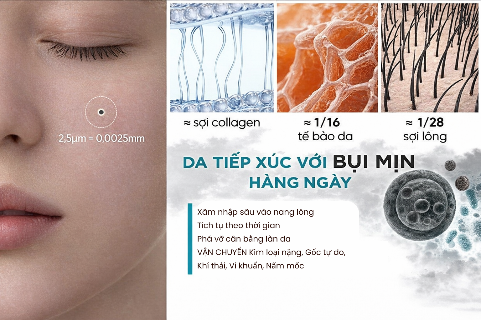 • Bụi mịn bám sâu trong lỗ chân lông